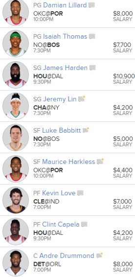 Drummond and Vucevic are both excellent choices tonight, but because the Pistons have much more to play for, i'm going with Drummond in what should be a great battle between superb centers. Drummond's fantasy numbers have slipped of late, but that shouldn't be a concern against the Magic who are in the more generous half of the league against opposing centers for fantasy purposes. He's averaging 34 FFPG over the last five, and is in for a normal workload to close out the season as the Pistons try to avoid a first round matchup against the Cavaliers.
