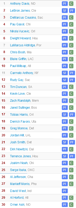 While salary cap league and weekly leagues all benefit from the ebb and flow of players; it is the daily fantasy sport fans who really benefit here from knowing who is doing what on a game-to-game basis. To that end here are the up-to-the-game rankings for the power forward positions. There is some position cross-over here as multiple formats have players eligible at both the center and power forward position. These rankings take into account players eligible at multi positions; however, does not look at center specific players.