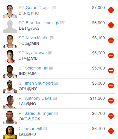 Martin and the Timberwolves play host to the Houston Rockets tonight and I’m betting Martin will want to show that he still has game left in him to his former team. Martin is coming off a bad night against Miami as he finished with only 8 points on the night; however, before that outing Martin had three consecutive exceptional outings. For the price here, Martin is a good play at home against the Rockets as Ricky Rubio is out and the offense will need to come from somewhere.