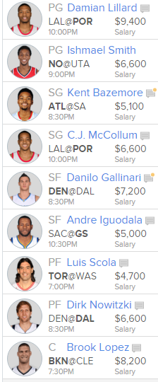 The Wiz face off against the Raptors, meaning Beal with be guarded by DeMar DeRozan who can be a frustrating defender most nights. Beal is not a safe pick tonight. Kobe is our other worst value for many obvious reasons, but we are simply here to sway and owners who want to live on the edge tonight. Byron Scott has said he will play, but not how much. Unfortunately, Kobe’s last days are here and he looks abysmal out there. Even worse, he is only there to sell tickets instead of mentor younger players who desperately could use his tutelage.