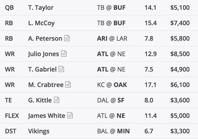 We've had some DFS success this season, finding different matchups to exploit with top players and value plays that help us cash in and turn Sundays into an even better day of celebration. Now let's take a look at an optimized lineup for the full Week 7 slate.