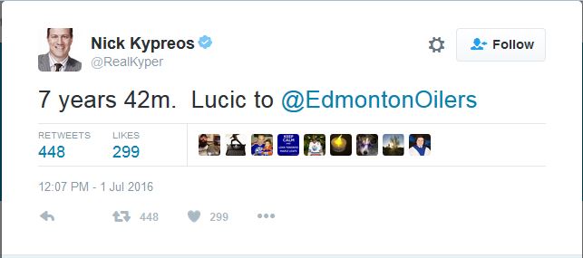 The Edmonton Oilers engaged in phase two of their strategic plan this off-season, signing Milan Lucic to a seven year, $42M deal after trading Taylor Hall to the Devils yesterday: